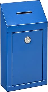 Boîte de collecte de dons en métal à fixation murale ou sur comptoir avec emplacement pour pièce de monnaie et serrure incluse avec 2 clés (bleu)