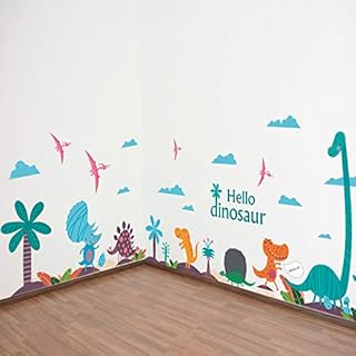 Bande Dessinée Colorée Dinosaure Palmier Stickers Muraux pour Enfants Chambres Crèche Enfants Stickers Murale Décor Diy Home Art PVC Décoration