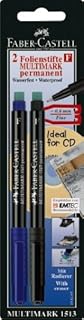 Faber Castell 156295 Lot de 2 Marqueurs Multimarque Permanent F Bleu/Noir
