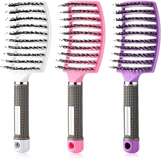 3 Pièces Brosse Demelante Cheveux Incurvée Ventilée à Poils de Sanglier Brosse à Cheveux Démêlante à Séchage Rapide Brosse de Coiffure Courbée Ventilée Brosse à Cheveux à Séchage Rapide, 3 Couleurs