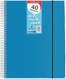 Starplast 182014az, Dossier Spirale flexible, Classeur avec 40 Étuis Transparent Lisse, Dossier A4, Couvercles en Plastique Résistant pour Enregistrer des Documents, Dessins, Partitions, etc. Bleue