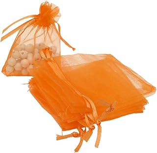 100pcs Pochettes de Cadeaux En Organza Sacs de Bijoux Pochettes Faveurs De Mariage Coloré - Orange, 135mm