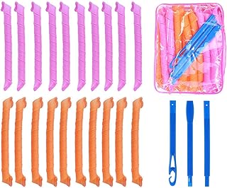 20pcs Bigoudis en Spirale, Joyhoop Magic Hair Bigoudis Bigoudis en Spirale Bigoudis Magique Kit de Coiffage pour Boucles en Spirale avec 3 Crochets pour Femmes Filles Salon à La Maison, Rose + Orange