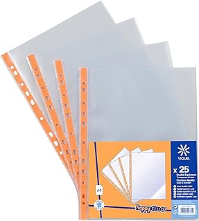 Viquel - Lot de 25 Pochettes plastiques perforées a4 avec bande de renfort Orange fluo - Orange