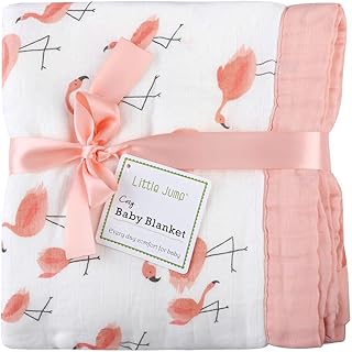 Mousseline couverture pour bébés, Flamant' extra douce 100% bambou,120 x 120 cm, à 2 couches, ideale comme couverture pour poussette (Flamant)