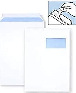 250 ex Grande enveloppe avec fenêtre pochette courrier A4 C4 papier kraft blanc 90g format 229 x 324 mm une enveloppe blanche avec fenetre 50 x 100 mm fermeture bande adhésive autocollante siliconée
