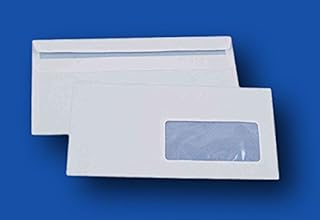 lot de 500 Petite Enveloppe Courrier DL avec fenêtre 45 x 100 - papier velin blanc 90g format 110 x 220 mm une enveloppe blanche avec fermeture bande adhésive autocollante siliconée