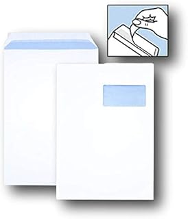 lot de 250 enveloppe courrier A5 avec fenêtre - C5 papier velin blanc 90g format 162 x 229 mm une enveloppe blanche avec fermeture bande adhésive autocollante siliconnée