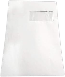 20 ex Grande enveloppe A4 avec fenêtre pochette courrier C4 papier kraft blanc 90g format 229 x 324 mm une enveloppe blanche avec fenêtre 50 x 100 mm fermeture bande adhésive autocollante siliconée
