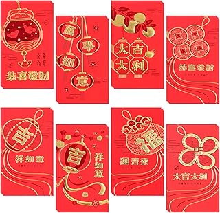 Lot de 32 enveloppes rouges chinoises pour le Nouvel An chinois Hong Bao - Enveloppes porte-bonheur pour festival de printemps, festival, mariage, anniversaire (8 styles)