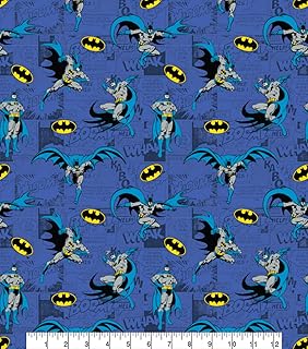 Tissu DC Batman - Multiples 0,5 M - (100% coton, véritable tissu sous licence, 7 modèles différents) (Tissu Batman - Bleu Comics)