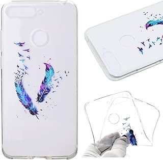 WenJie Coque pour Huawei Honor 7A Plumes colorées Transparent Souple Coque de Protection Etui Silicone TPU Case Shell pour Huawei Honor 7A (5.7 Pouces)