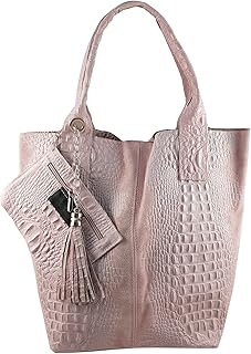 Sac cabas en cuir véritable pour femme avec sac à bijoux dans de nombreuses couleurs - - Crocodile rose,