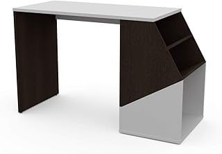 LEVIRA – Table de Bureau avec étagère, Bureau, Bureau Informatique, Table de Travail, Isonzo - 120 x 74 - Wengue Foncé et Blanc