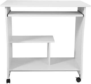Bureau d'ordinateur sur Roulettes Table Informatique Bureau Informatique à Roulettes Poste de Travail Table de Travail Bureau d'ordinateur Mobile avec Support Clavier Coulissant Blanc 80x49,5x76 cm