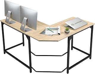 Aingoo Bureau d’angle d'Ordinateur, Table Bureau Informatique Gaming Poste de Travail Table Informatique pour Maison et Bureau, Oak