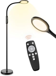 ACMHNC LED Lampadaire Salon Dimmable Avec Télécommande, 7W Daylight Lampe de Lecture Tactile Lampe de Plancher Pour Chambre, Studio, Col De Cygne, 3 Températures de Couleur, 6 Modes de Scène