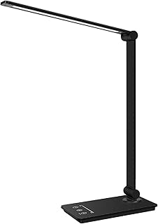 Lampe de Bureau LED, Ainkedin Lampe de Chevet avec Chargeur sans Fil, Lampe Led Dimmable 5 Modes 5 Niveaux de Luminosité, Tactile Protection des Yeux, Port USB/Fonction Minuterie Lampe de Lecture