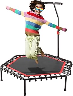 Bunao Trampoline, Mini Trampoline Pliable Jumping Fitness pour Enfants et Adultes, Poignée Réglable, Trampoline Intérieur/Extérieur